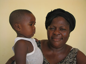 En disant tout ca, Safourata prend dans ses bras Kokou Awokou, un petit garcon de 13 mois. Elle vient de l’accueillir chez elle. La maman du garcon est morte du VIH il y a peu de temps. |