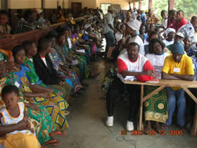 Les campistes au pied de la Généreuse cascade d'Akloa